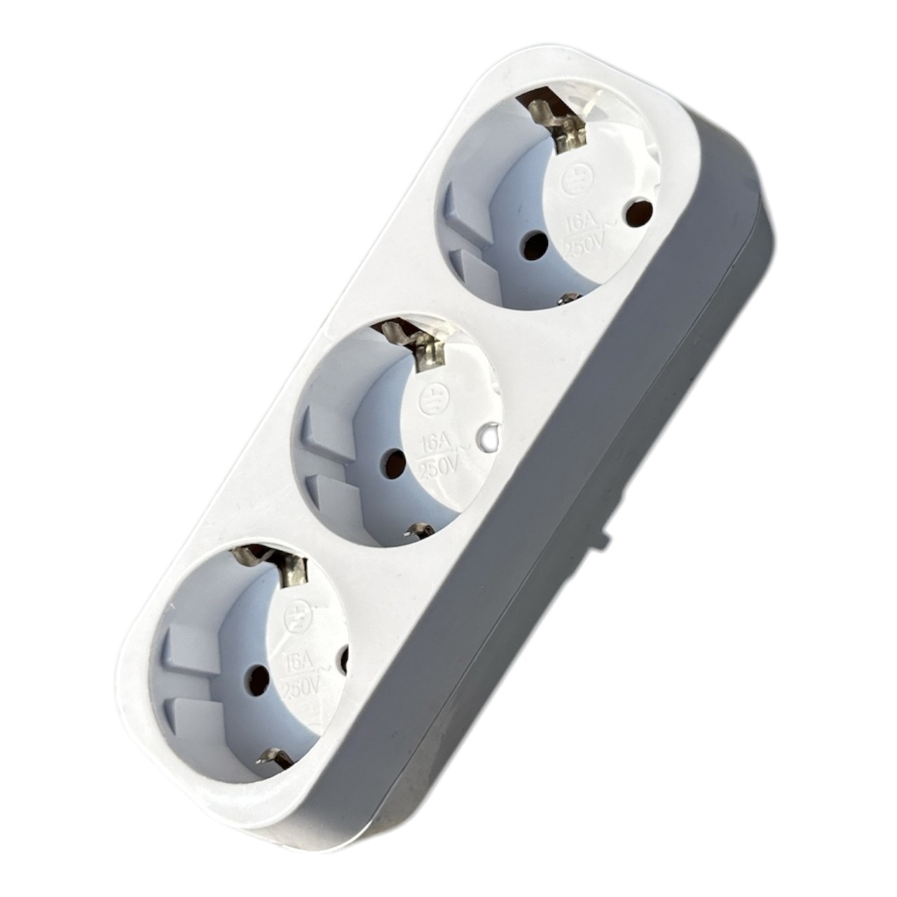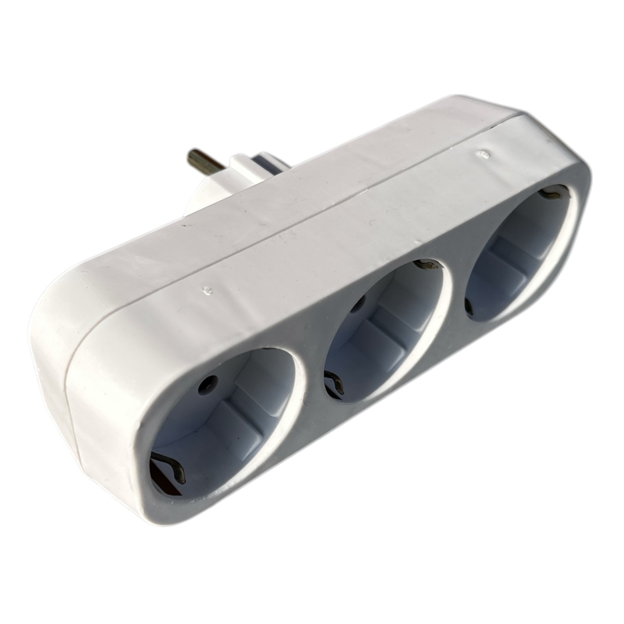 Adaptorul cu 3 prize si impamantare este un accesoriu electric care are ca si scop principal dispersarea energiei electrice dintr-un singur punct 3 trei surse de alimentare diferite. Acest produs este facut din plastic si are 3 socluri shuko fiind foarte util atunci cand este un numar insuficient de prize in casa dumneavoastra. De asemenea, acest tip de adaptor 3 prize cu impamantare are culoarea alba si dispune de un corp si terminale facute dintr-un material rezistent la temperaturi inalte si la eventuale socuri care intra in contact cu aceasta.