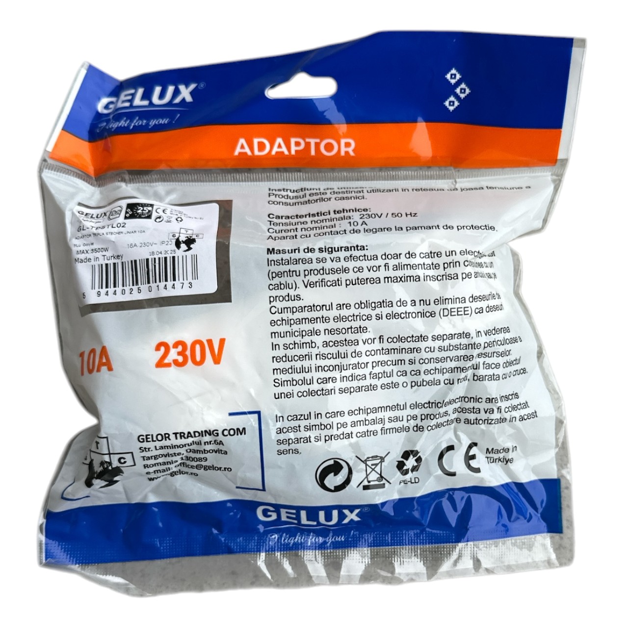 Specificatii Adaptor 3 prize cu impamantare, 16A, 230V: