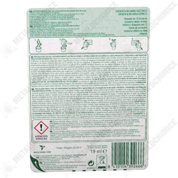 Instructiuni de utilizare Airwick Aparat cu rezerva odorizant camera flor 19 ml: Rezerva se introduce cu capul ascutit in gaura aparatului electric si acesta se introduce in priza. Solutia de 19 ml dureaza pana la 75 de zile.