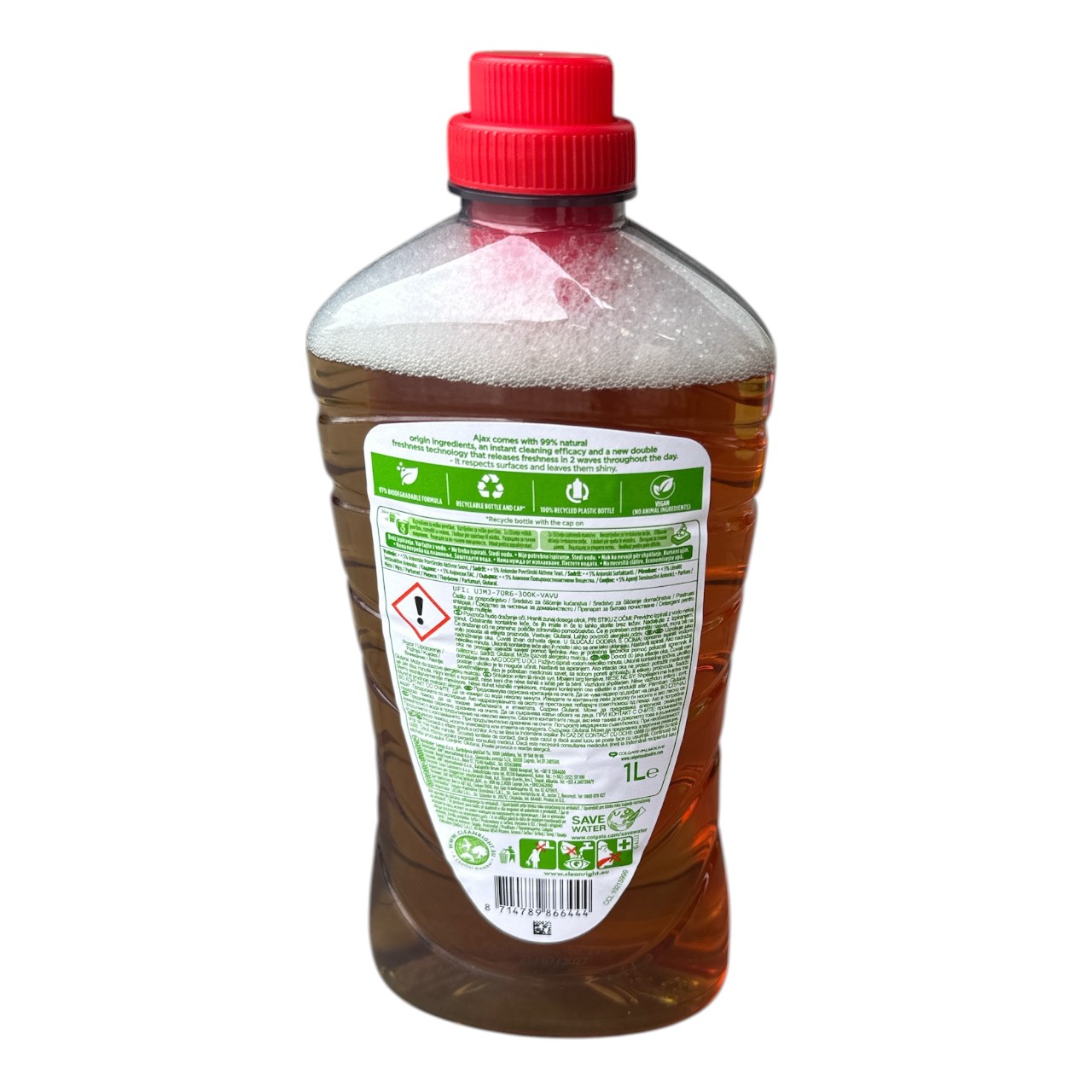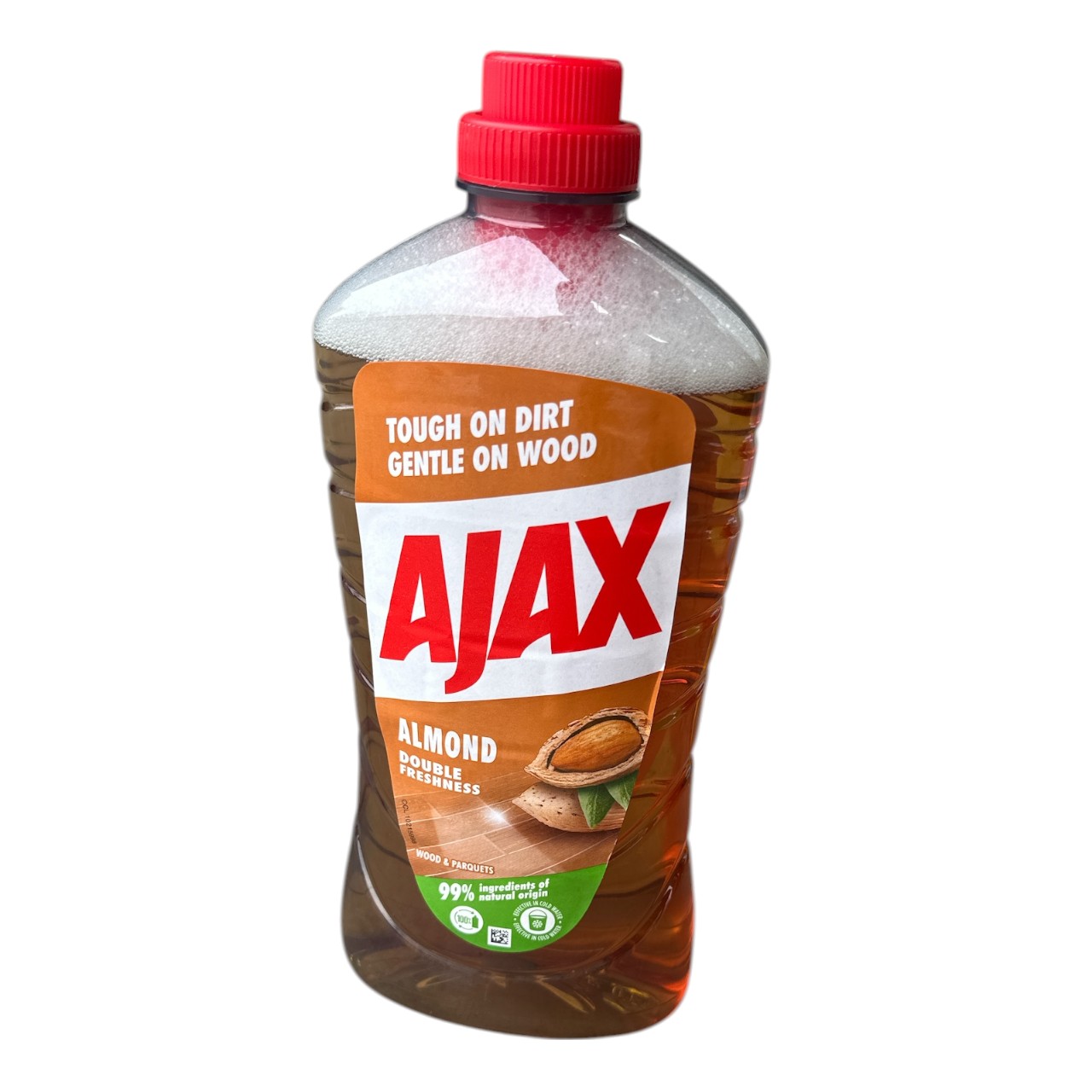 Ajax optimal 7 este o solutie de curatat lemn ce contine ulei de migdale si vine la sticla de 1 litru. Aceasta solutie inedita confera posibilitatea curatarii si improspatarii parchetului si lemnului delicat, asigurand multe ore de prospetime, stralucira fara nicio urma, inlatura praful fara sa fie necesar sa frezi podeaua, iar dupa spalare nu trebuie sa clatesti. Solutia de curatat lemn Ajax Optimal 7 Almond oil vin intr-o froma lichida foarte concentrata care trebuie diluata in apa (1 capac plin cu solutie in 5 litri de apa).
