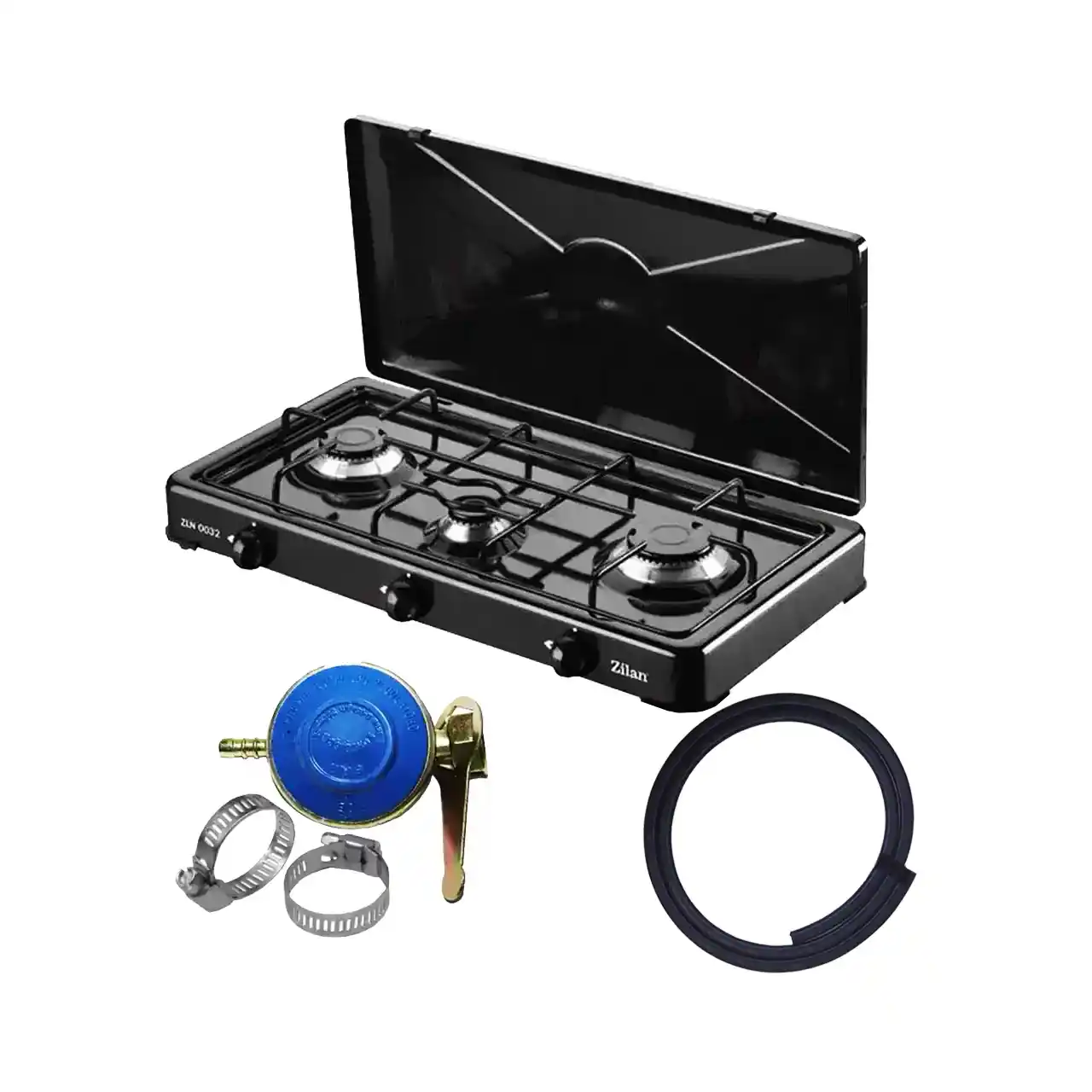 Aragaz Zilan 3 ochiuri Negru + 2m Furtun gaz + 2 Coliere + Ceas butelie