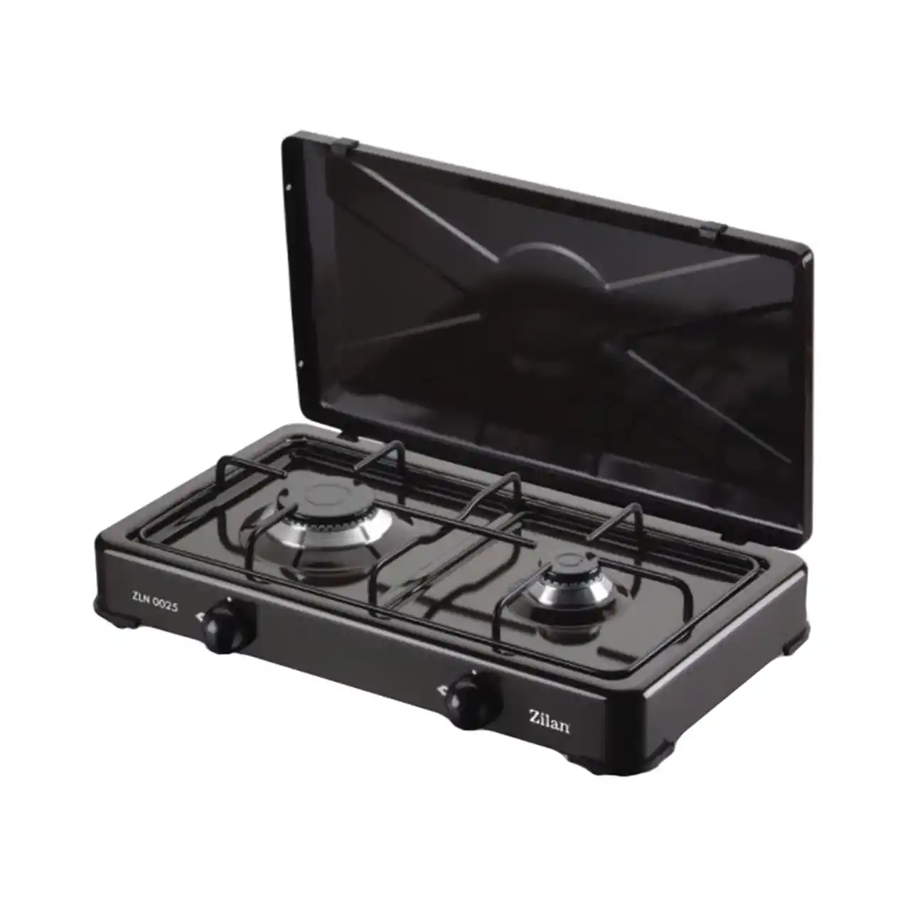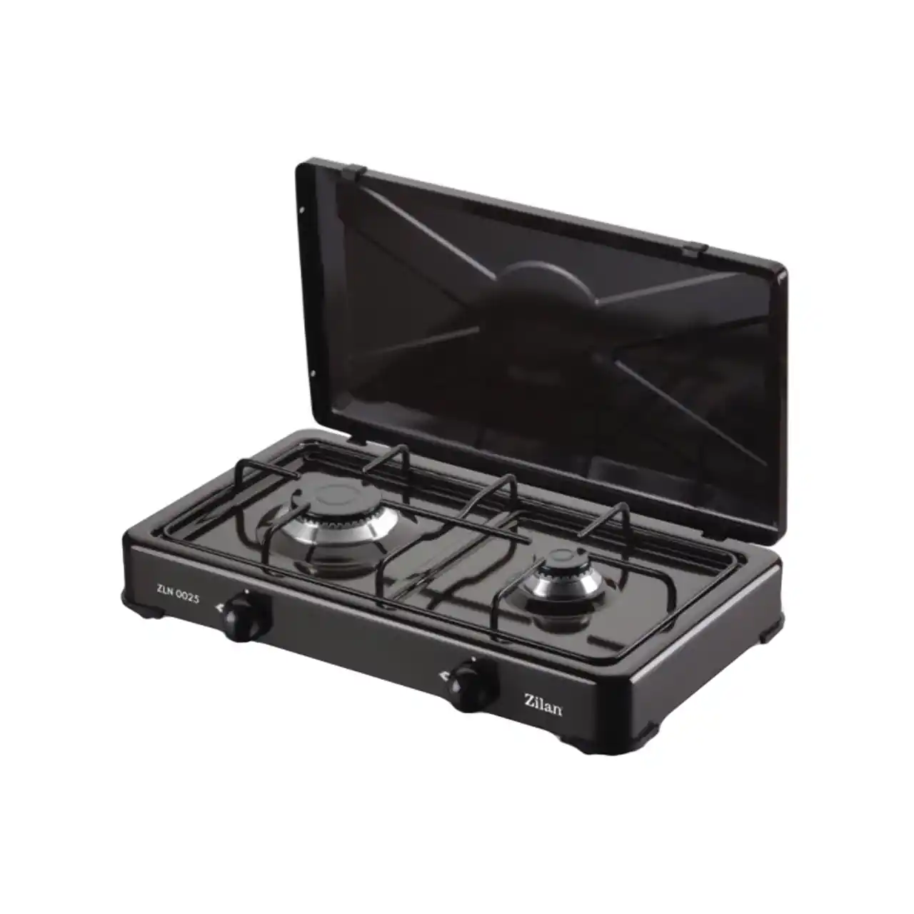 Aragaz Zilan 2 ochiuri de culoare neagra confectionat din metal emailat, gratar pentru pozitionarea corespunzatoare a vaselor de gatit, butoane reglabile pentru controlul gazului, si capac din metal pentru protectie. Cu un design ingenios, compact si placut, aragazul zilan in 2 ochiuri este ideal pentru drumetii, in excursie, sau la cort in aer liber.