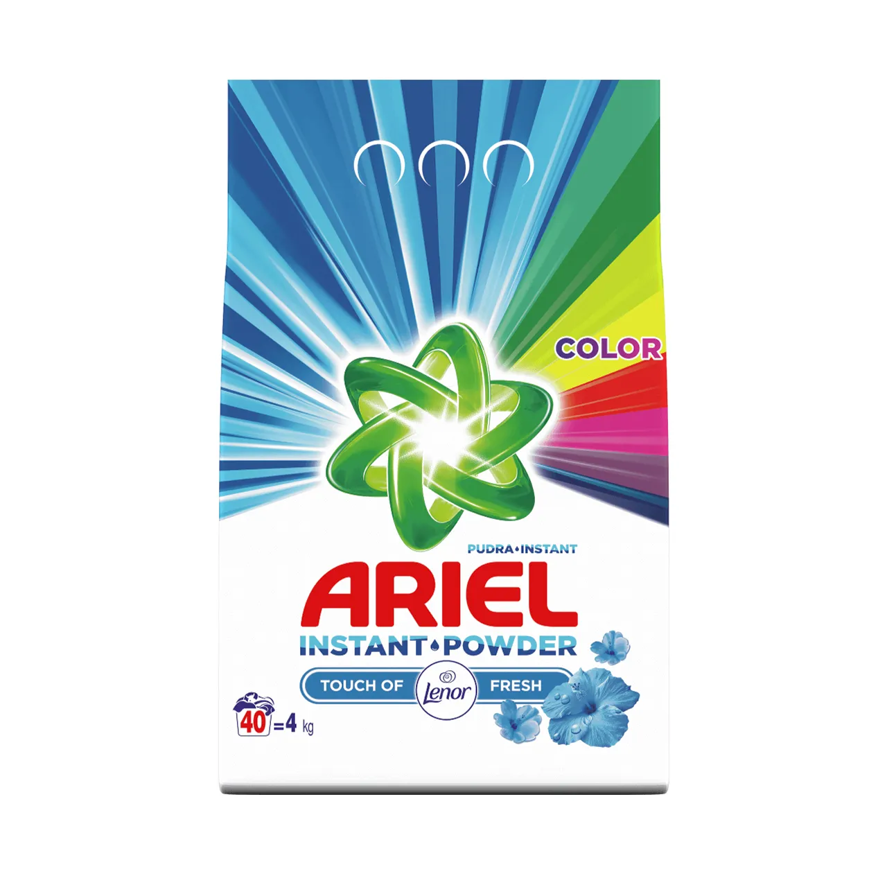 Detergentul automat Ariel Color Touch of Lenor Fresh, 4 kg ce asigura 40 de spalari in masina de spalat rufe autoamata, contine o noua formula inovativa ce ajuta atat la eliminarea petelor extrem de dificile cat si mirosurilor perisistente. Acesta este sub forma de pudra instant care se dizolva rapid in apa rece sau calda, permitand in acest fel spalari rapide chiar si la 30 de grade. De asmenea, Ariel Touch of Lenor Fresh Color imbunatateste rezistenta tesaturilor impotriva deteriorarii / ruperii si revigoreaza culorile, oferind un aspect de nou hainelor tale.