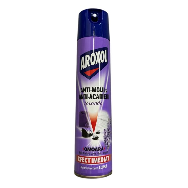 Aroxolul cu formula sa speciala se utilizeaza pentru a elimina atat acarienii, care sunt principalii raspunzatori ai afectiunilor alergice, cat si moliile ce distrug hainele, actionand in toate fazele sale de dezvoltare (ou si larva). Cu efect instant, parfum excelent de lavanda si durata de actiune de pana la 3 luni de zile este ajutorul ideal pentru caminul dumneavoastra.