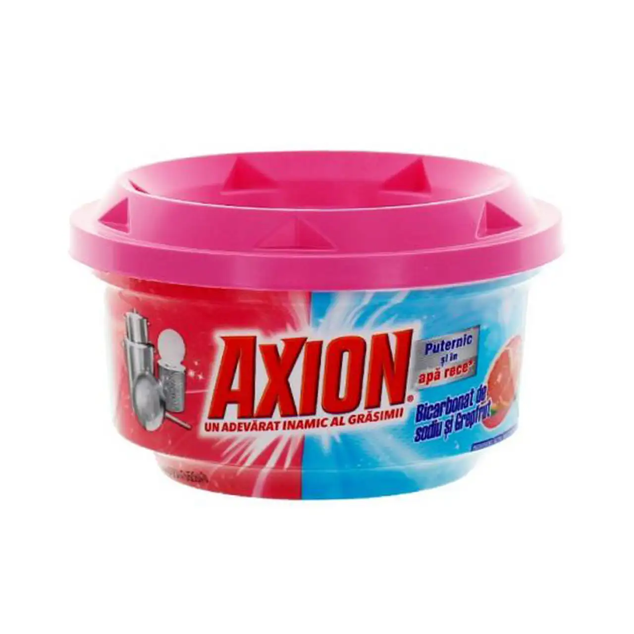 Axion pasta de curatat vase cu bicarbonat de sodiu si grapefruit in cantitate de 225 grame este un produs cu eficacitate inalta in eliminarea grasimii, petelor si resturilor de mancare arsa de pe vasele dumneavoastra. Multumita continutului sau de bicarbonat de sodiu, reduce semnificativ duritatea apei si potenteaza eficienta pastei de curatat vase, astfel incat acestea sa devina stralucitor de curate.