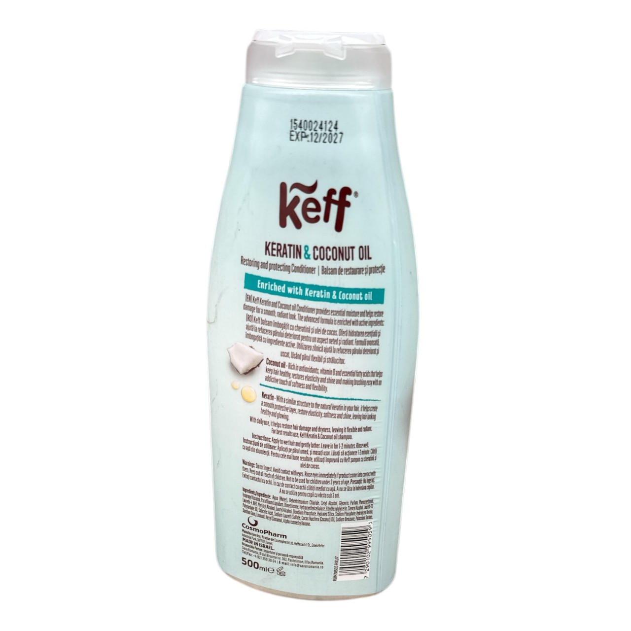 Specificatii Balsam par cu ulei de cocos si keratina, Keff 500 ml :