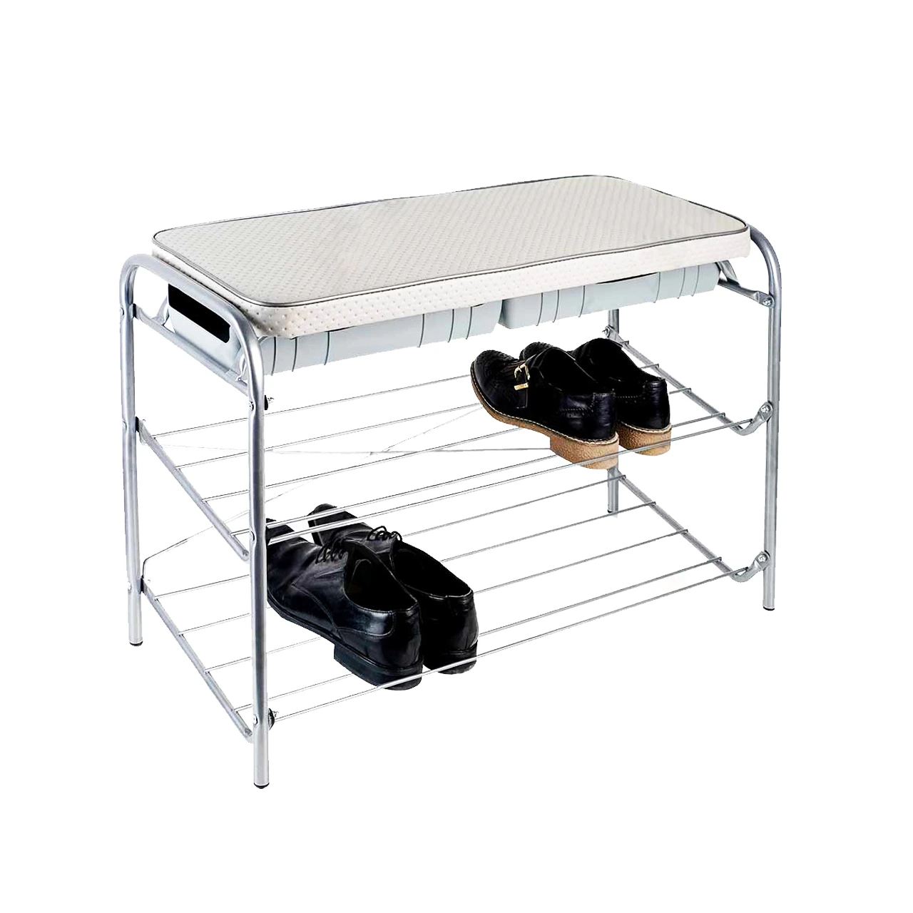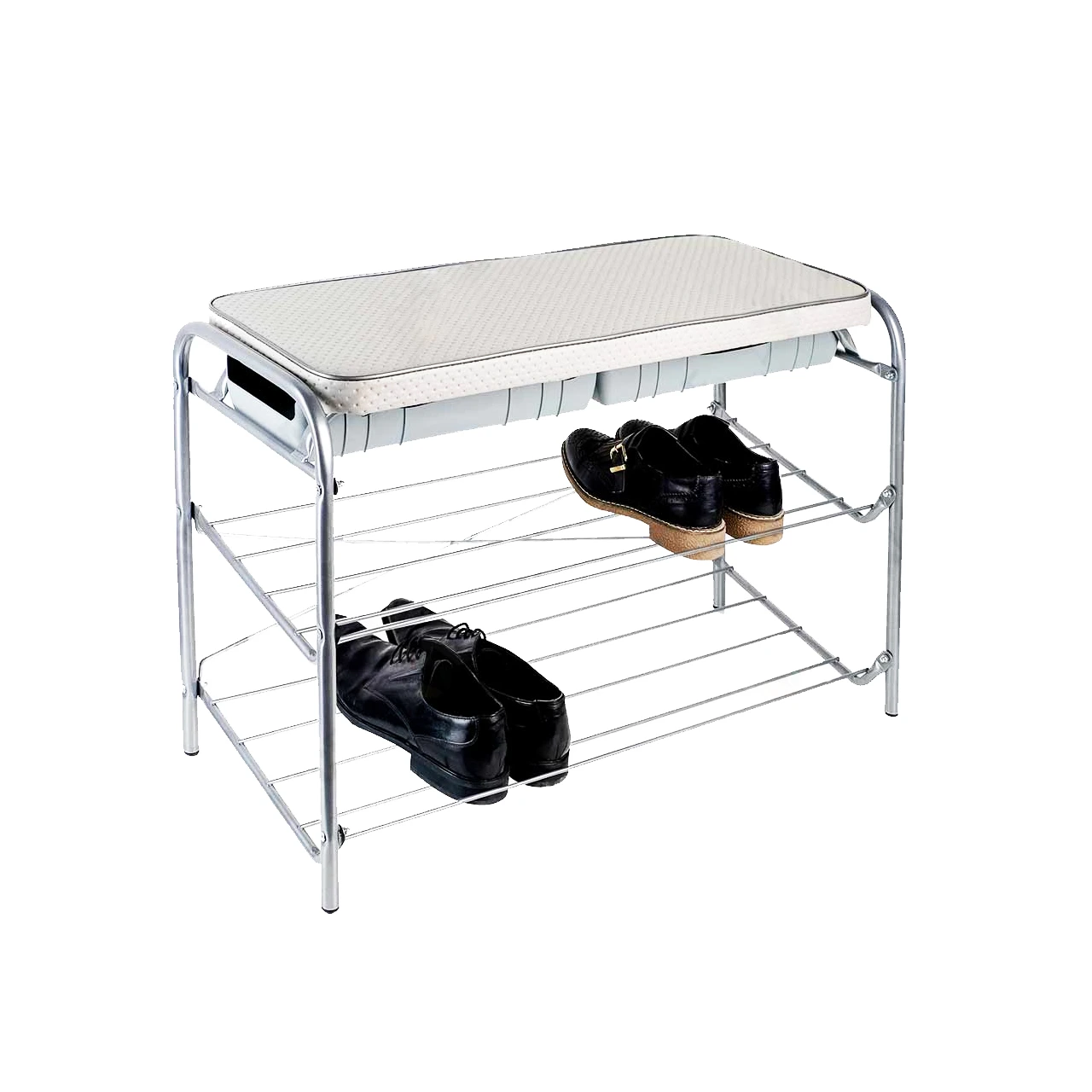 Banca depozitare pantofi, metalica, (2 rafturi), gri