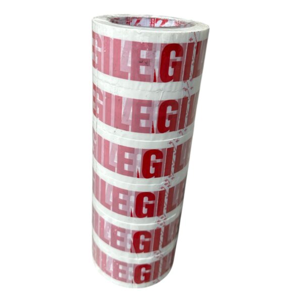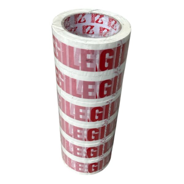 Banda adeziva fragile cu dimensiunile de 4.8 cm x 60 M in cantitate de 6 bucati (role) este un produs realizat dintr-un substrat de poliester cu hartie avand adeziv puternic pe o latura. Aceasta banda adeziva este inscribtionata cu FRAGILE in litere initiale mari de culoare rosie pentru a indica faptul ca acel obiect sau continut dintr-o cutie trebuie protejat sau manipulat cu grija intrucat este delicat si fragil. O astfel de banda adeziva fragil se foloseste in special la ambalarea coletelor care urmeaza sa fie expediate astfel incat transportatorul sa le manipuleze cu grija. In plus, acesta poate inlocui foarte usor orice alta rola de scotch (scoci).