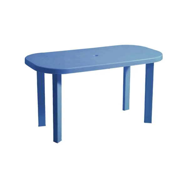 Masa din plastic cu forma ovala si dimensiuni de 110 x 65 cm de culoare albastra, marca Bella este un model clasic potrivit pentru diverse spatii exterioare sau interioare pentru locuit. Masa Bella este fabricata in intregime din polipropilena si are picioarele detasabile ceea ce o face usoara de transportat sau depozitat. De asemenea, este foarte rezistenta la actiunea substantelor chimice, la raze solare UV sau alte intemperii. Dimensiunea blatului de 110 x 65 cm, convera suficient spatiu, astfel incat 4 perooane sa stea asezate intr-un mod lejer atunci cand o amplasati afara in gradina, in curte sau pe terasa.