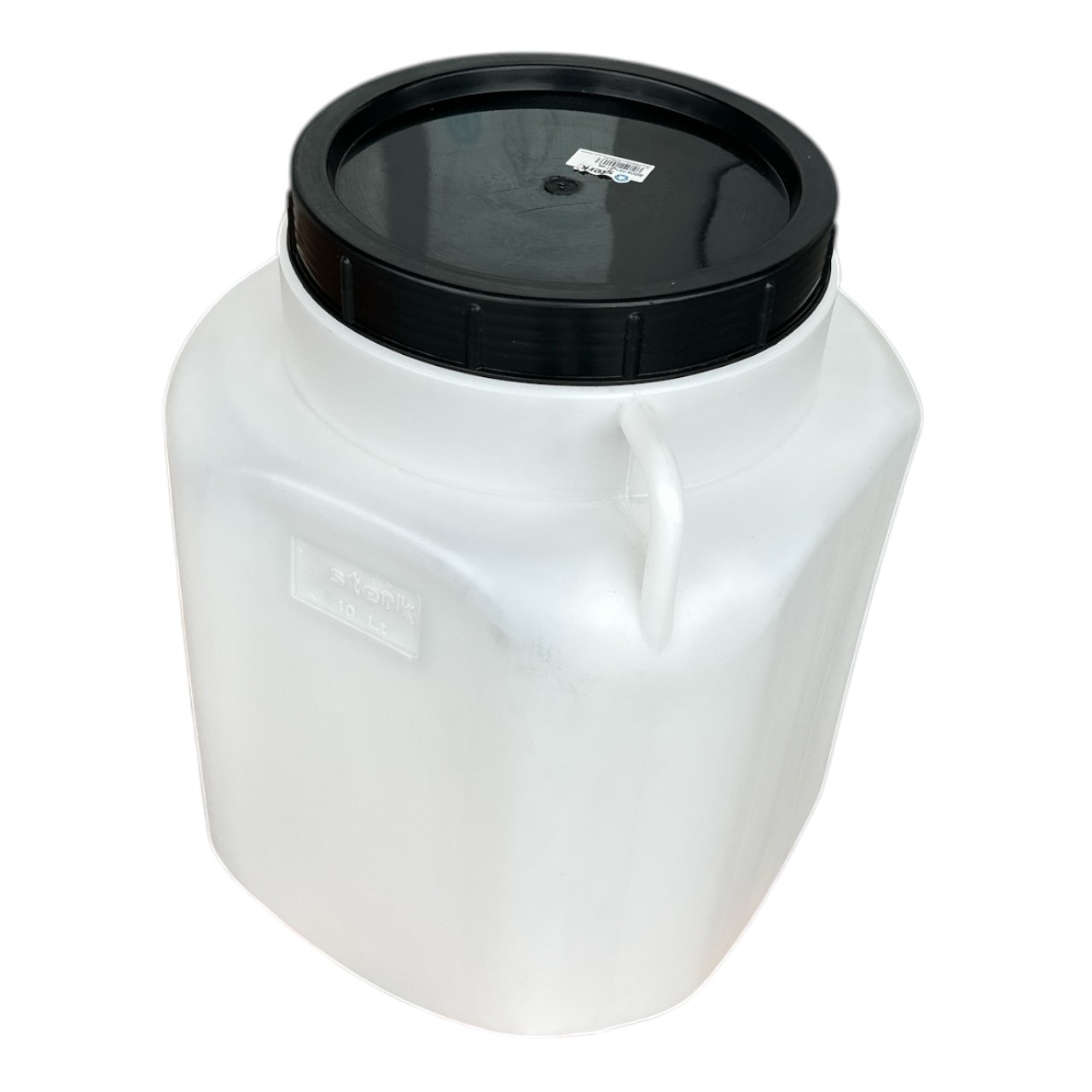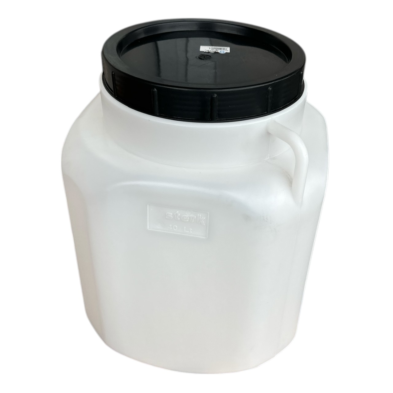Bidonul din plastic patrat cu capacitatea de 40 litri prevazut cu capac este realizat din granule de polietilena, ceea ce ii confera acestuia o rezistenta la coroziuni, durabilitate, nu este casant, iar alimentele depozitate nu isi modifica proprietatile din punct de vedere fizic sau chimic. Fiind produs din polietilena alimentara, bidonul patrat din plastic de 40 L poate fi utilizat in orice gospodarie sau unitate alimenatra, cu scopul de a depozita atat lichide si bauturi alcoolice (apa, vin, tuica, visinata, palinca, etc), cat si pentru conservarea muraturilor sau a altor alimente. Datorita capacului filetant, produsele depozitate in bidonul de plastic alimentar se vor pastra etans fara a afecta calitatea lor. Bidonul din plastic de 40l cu manere permite o manipulare eficienta, sigura si confortabila a produsului, iar forma sa patrata ajuta la eficientizarea spatului in gospodarie.
