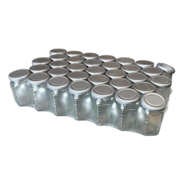 Borcan de sticla cu capac, hexagonal, 196 ml set 33 buc