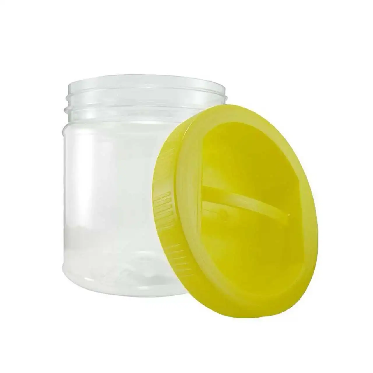 Acest borcan din plastic alimentar poate avea nenumarate intrebuintari, fiind un recipient de depozitare si transport pentru orice fel de obiect sau produs alimentar de dimensiuni mici si medii.