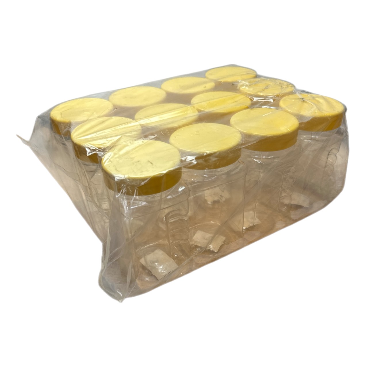 Borcanul PET (plastic) cu forma patrata avand volum de 350 ml (0.35 l) la set de 12 bucati sunt ideale pentru conservarea si pastrarea pe termen lung a unei game variate de produse alimentare, de la ardei iuti si masline pana la condimente, sau bomboane. Intrucat este fabricat din PET, acest borcan plastic este transparent, extrem de rezistent la uzura si nu modifica in vreun fel gustul sau mirosul produselor. Setul de 12 bucati de borcane PET va ofera versatilitate si flexibilitate in organizarea alimentelor conservate si va permite sa depozitati cu mare usurinta. Pe langa utilizarea lor alimentara, borcane PET transparente pot fi de mare ajutor si pentru alte scopuri cum ar fi pentru depozitarea surubelelor, cuielor si multor alte accesorii utilizare in gospodarie.