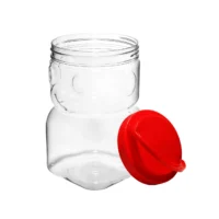 Borcanul de plastic pentru miere tip ursulet dotat cu capac de capacitate 1.5 litri ambalat la set de 9 bucati este special conceput pentru imbutelierea si depozitarea mierii. Forma sa asemanatoare cu un fata unui ursulet il face atragator si adorabil, potrivit pentru cadouri sau pentru punerea in vanzare a mierii la targuri sau in piete. Capacitatea de 1.5 litri il face potrivit pentru ambalarea unei cantitati semnificative de miere.