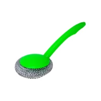 Buretele de vase din inox cu coada scurta este un produs folosit pentru curatarea vaselor murdare (oale cratite farfurii, boluri tacamuri) in bucatarie. Acest tip de buret vase vine insotit cu un suport dotat cu coada scurta ce permite o utilizare mai buna, comoda si sigura. Buretele este fabricat din inox, ce confera o rezistenta foarte buna la uzul repetat si prelungit. In acest fel veti putea elimina murdaria si grasimea arsa de pe vase, fara probleme. Coada buretelui este fabricata din polipropilena, un material rezistent la apa, substante chimice si socuri mecanice. Multumita combinatiei intre un burete din sarma inox cu coada din plastic acest instrument ofera o curatare eficienta a vaselor si suprafetelor murdarite, indepartand mancarea si petele cu usurinta.