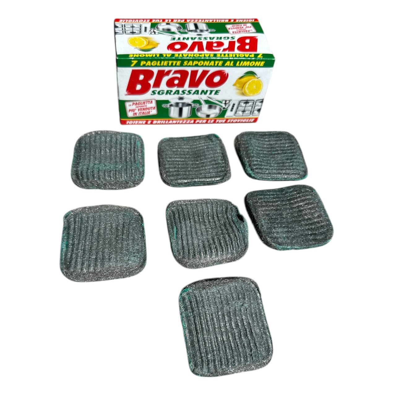 Bureti Bravo (Sgrassante) Metalici cu Sapun si Lamaie, 7 bucati