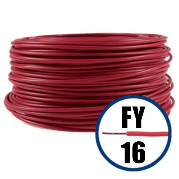 Cablul electric cu FY de 16, lungime de 100 M si culoarea rosu, este un conductor din cupru plin, folosit pentru instalatii electrice interioare fixe ce trec prin tuburi de protectie aparente sau ingropate, la cablajul interior al aparatelor de comanda. Cablul electryc cu fy de 16 are izolatie din PVC tip TI1 conform SR EN 50363-3. De asemenea, cablul electric are aplicabilitate in instalatiile de iluminat cu o tensiune nominala de 450/750 V. Fabricarea cablului electric a fost executata din cupru rotund unifilar (clasa 1), conform SR EN 60228.