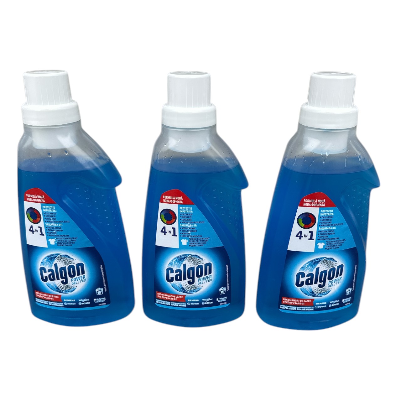 Pachetul cu 3 Calgon gel anticalcar la 750ml este un aditiv ce dedurizeaza apa si mentine masina de spalar in stare buna de functionare mai mult timp. Calgon gel 750ml anticalcar inlatura foarte usor depunerile si reziduurile ramase din detergenti de pe partile vitale ale masinii si usureaza procesul de spalare. Acest pachet de gel anticalcar Calgon la 750ml se foloseste la fiecare spalare impreuna cu detergentul obisnuit pentru rufe. Pentru obtinerea unor rezultate excelente, utilizati detergent de rufe fara fosfati si aplicati numai doza recomandata de gel calgon anticalcar.