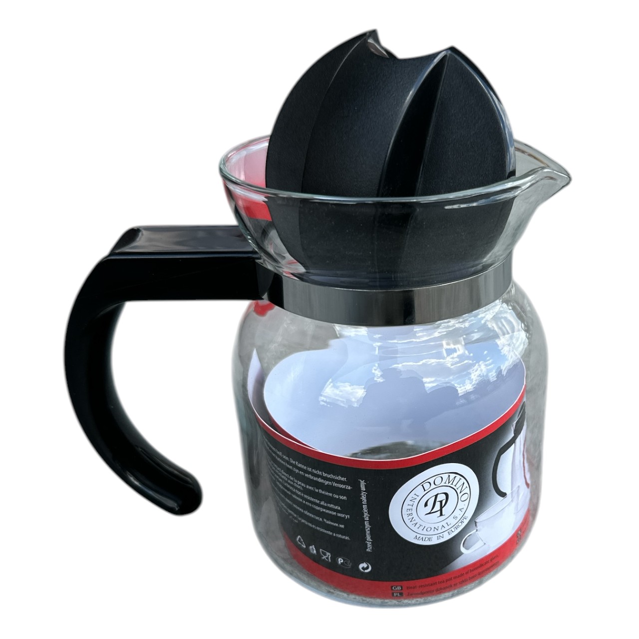 Cana de cafea si ceai cu maner si capac, cu o capacitate de 600 ml, este realizata din sticla borosilicata, transparenta ce ofera rezistenta la temperaturi ridicate, fiind ideala pentru pastrarea cafelei sau ceaiului proaspat preparat si fierbinte. Gura canii are o fanta pentru turnare, oferindu-va o modalitate comoda de a turna in ceasca, fara sa varsati pe langa. Designul sau elegant este completat de manerul practic si de capac, contribuind la mentinerea temperaturii si a aromei bauturii. Cu aceasta cana de ceai si cafea dotata cu maner si capac veti putea servi invitatii intr-un mod elegant, rapid si comod. De asemenea, aspectul placut si functionalitatea pe care o ofera va garanta utilizari repetate, ani la randul.