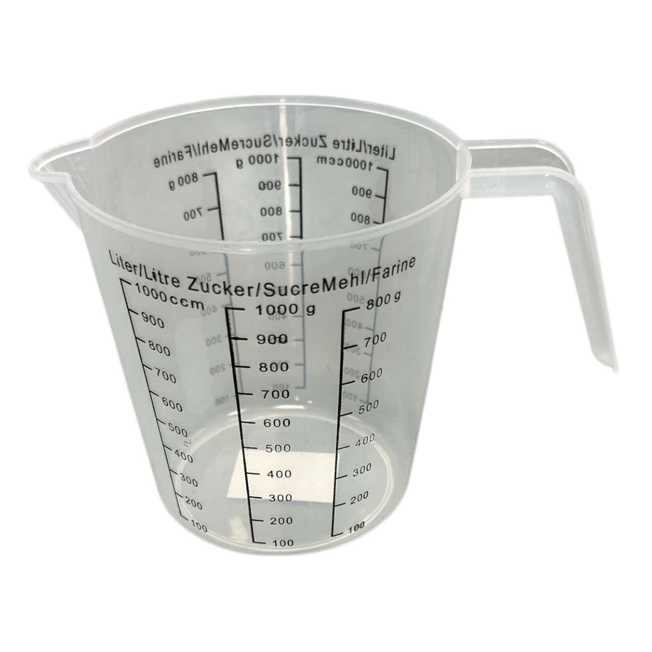 Specificatii Cana gradata din plastic 1000 ml (transparenta):