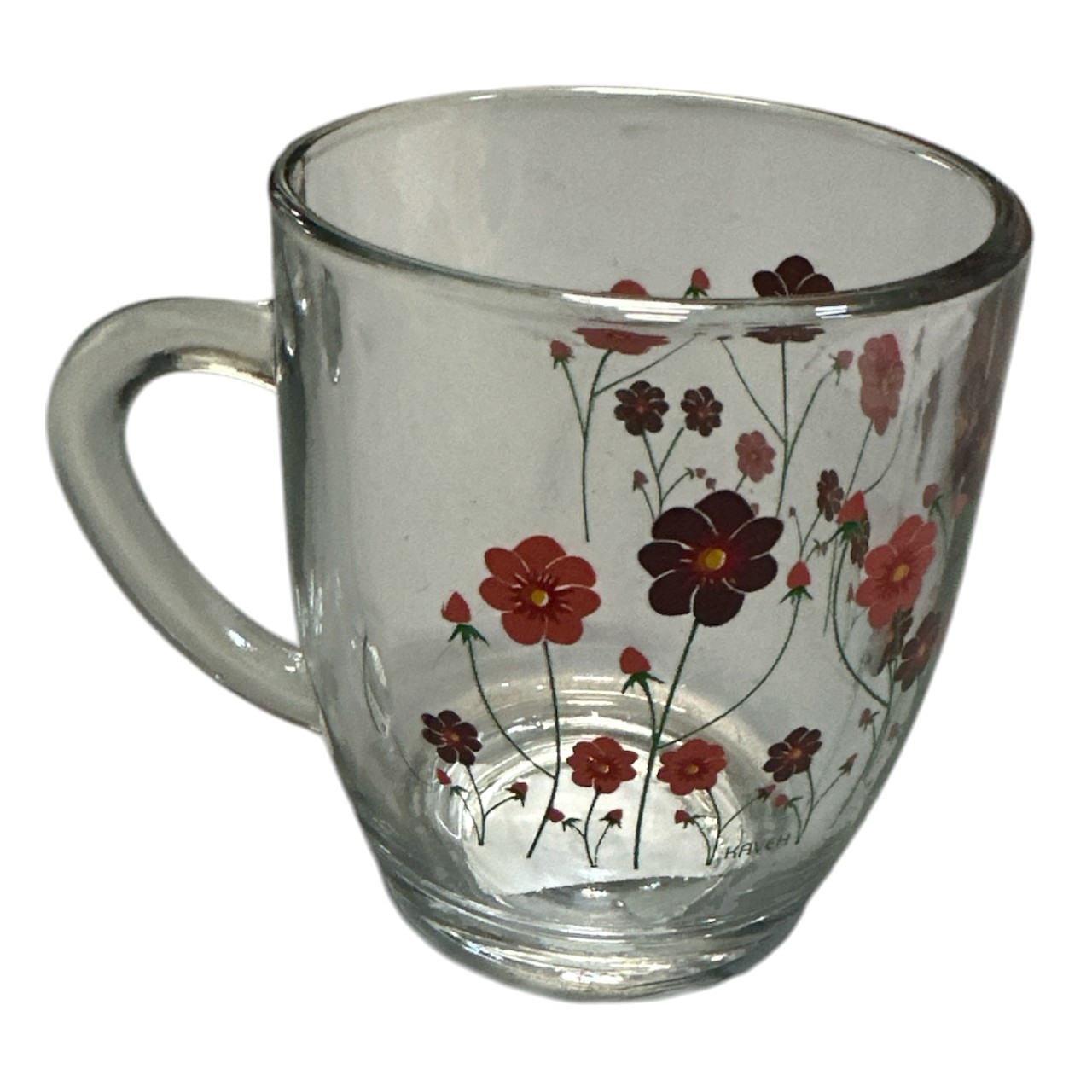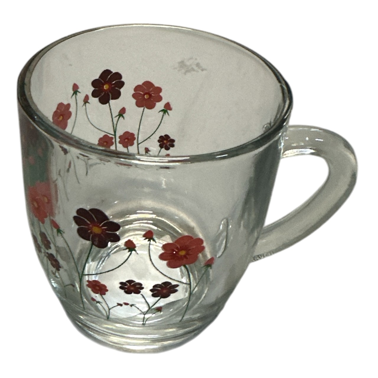 Specificatii: Cana sticla transparenta cu toarta si model, 255 ml