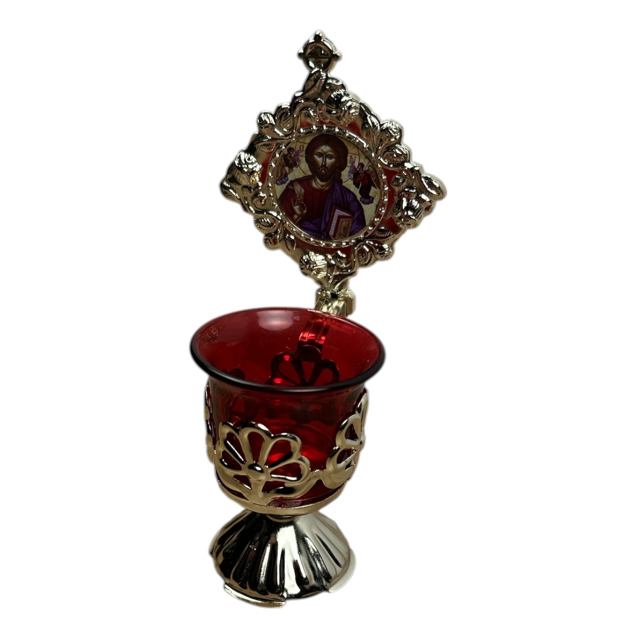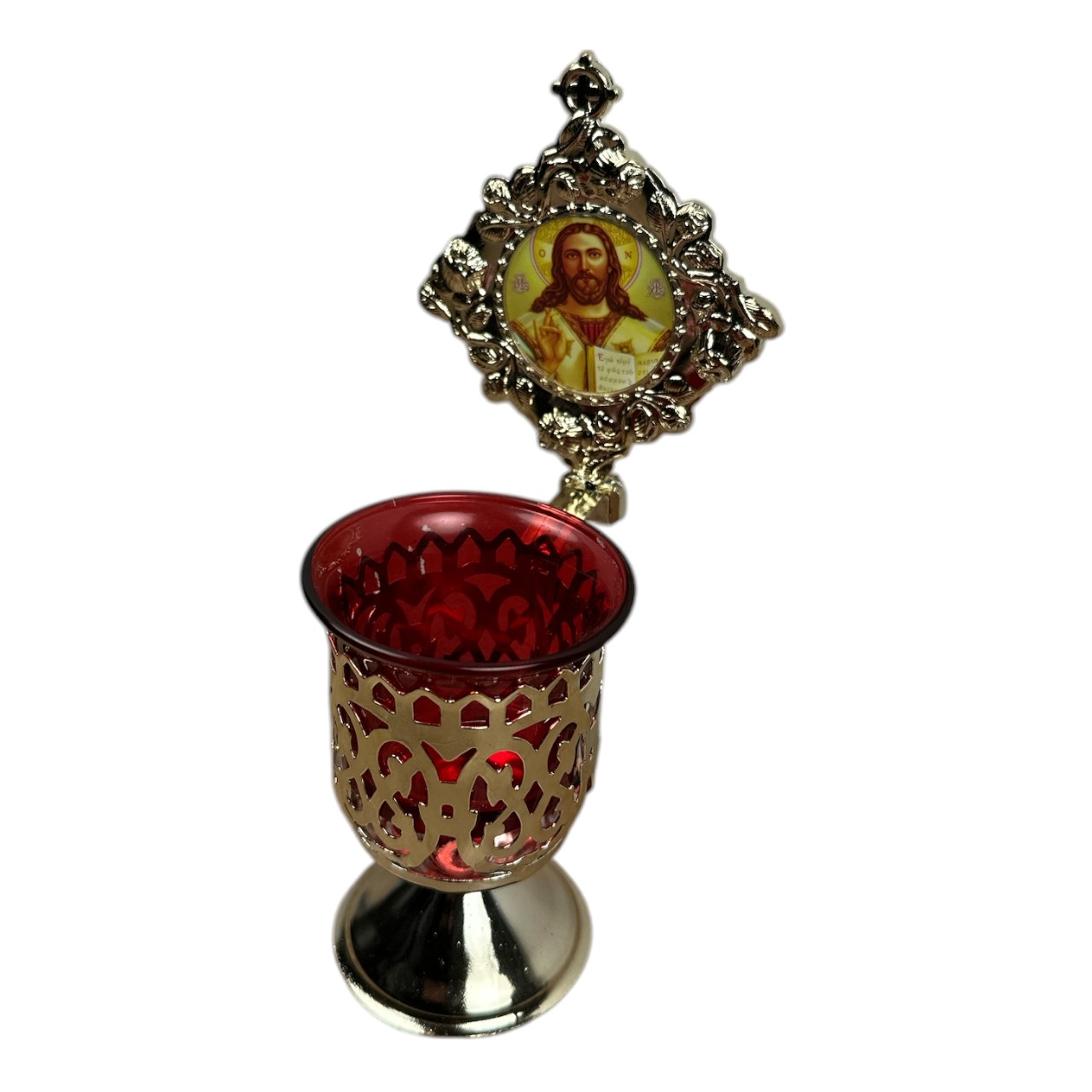 Candela de masa cu icoana ce ilustreaza diferiti sfinti sfant este inzestrata cu un pahar din sticla rosie sustinut intr-un suport metalic. In acest pahar rosu se poate pune atat o lumanare cat si ulei si un fitil pentru crearea unei lumini blande si constante. Candela de masa cu icoana poate deveni un un loc de ragaciune si al credintei pentru cei care o folosesc. Aprinderea cat si rugaciula la aceasta candela reprezinta o ofranda spirituala, avand o semnificatie profunda in traditia religioasa. Candela cu icoana este o modalitate rapida de a crea o atmosfera spirituala si de a impartasi lumina divina in timpul momentelor de rugaciune.