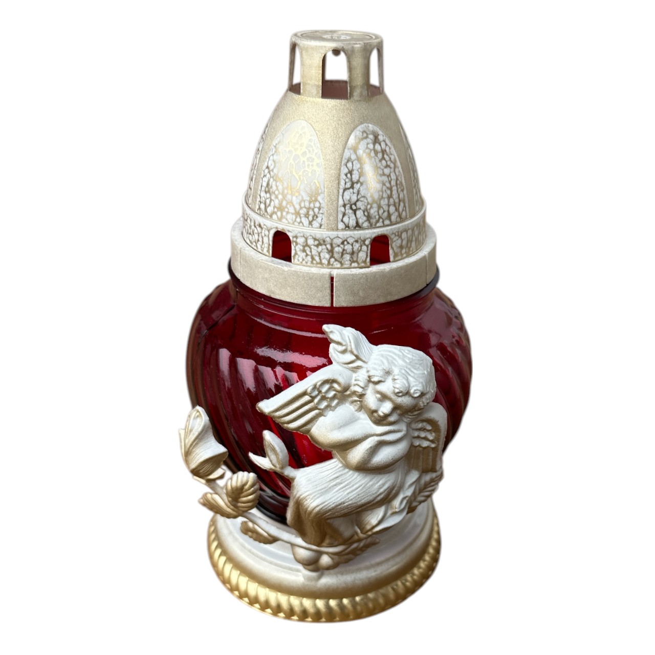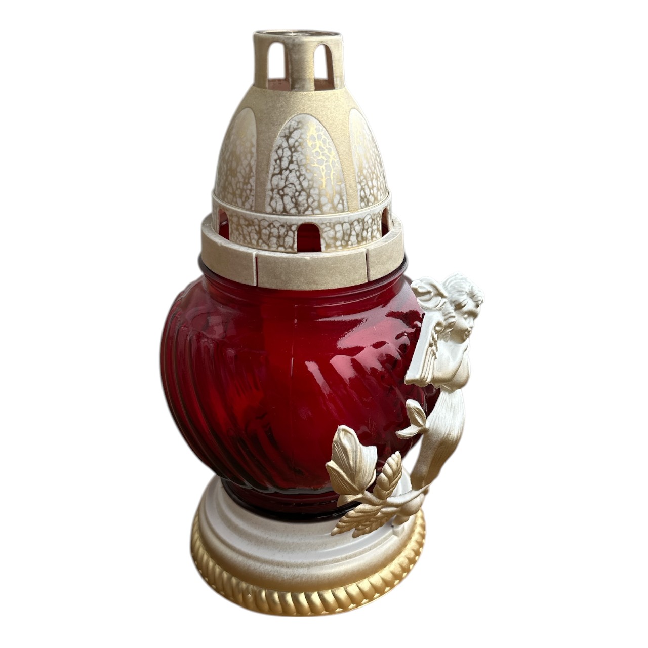 Candela sticla cu lumanare, model ingeras