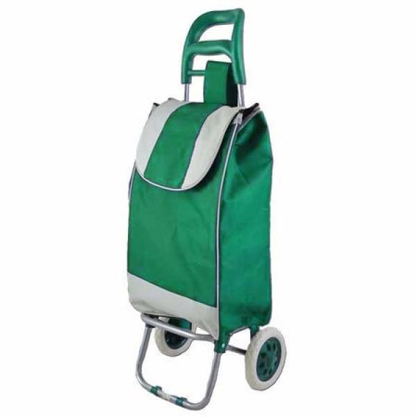 Carutul pentru piata, cu 2 roti din spuma, de culoare verde, conceput sa suporte pana la 20 de kilograme datorita cadrului puternic, fabricat din metal, pliabil cu sac care se poate detasa, confectionat din material dur, hidrofug (rezistent la lichide si ninsoare), de asemenea, sacul mai contine un buzunar cu inchidere ermetica prin fermoar, care se afla pe spatele acestuia.
