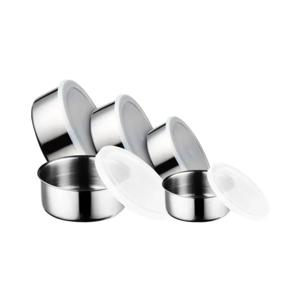 Caserole inox ermetice cu capac la set de 5 bucati va ofera o multime de optiuni pentru organizarea si depozitarea in frigider a alimentelor, cat si transportul lor. Inox confera caserolelor rezistenta imbatabila si durabilitate in timp, (nu vor rugini si nu se vor deforma), se curata foarte usor si pot fi folosite atat pentur depozitarea alimentelor in frigider sau congelator cat si pentru incalizrea mancarii in cuptorul traditional sau cuptorul cu microunde (atentie, nu le bagati in cuptor cu capac intrucat este din plastic).