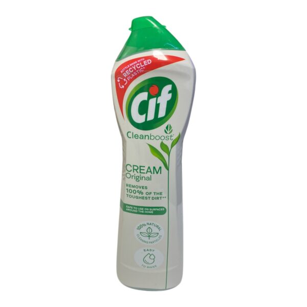 Cif crema de curatat original (cleanboost) 500 ml este o crema abraziva cu milioane ce microparticule care intra in profunzimea murdariei si dizolva, lasand suprafata 100% curata. Cif Crema cu micro cristale este probabil cea mai originala solutie pentru baia si bucataria dumneavoastra, intrucat poate spala toate suprafetele dure cum este faianta, chiuveta, lavoarul cada, toaleta, furtunul si para de dus, bateria lavoarului, etc. Multumita lui Cif Cream original, murdaria din tigaie, oala, gratar, cratita, sau farfurii vor disparea dupa prima aplicare de solutie. Totodata, Cif Cream albeste si daruieste stralucire suprafetelor, cat si un parfum care iti va bucura simturile.