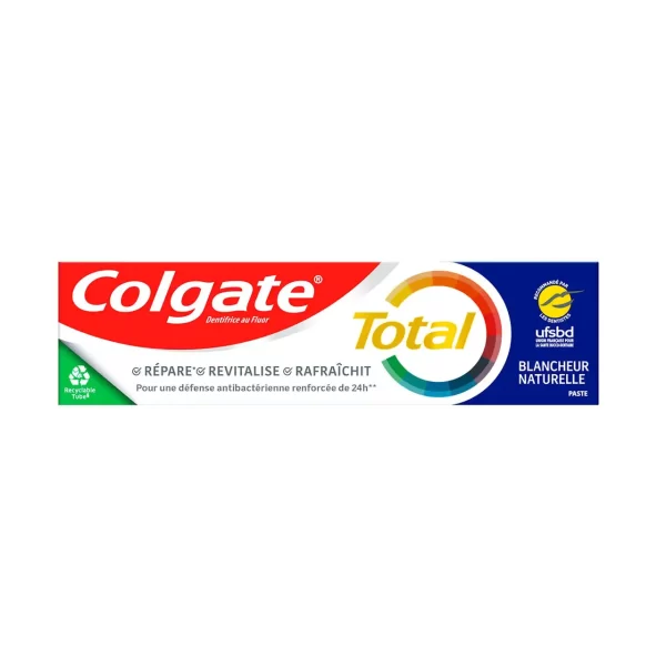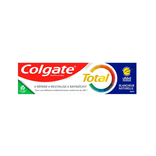 Pasta de dinti Colgate total natural white la tub de 70 ml este una dintre cele mai eficiente paste pentru curatarea dintilor, intrucat asigura inlaturarea petelor dentare, tartrului, placilor bacteriene si este un bun remediu pentru afectiuni gingivale si respiratia urat mirositoare. De asemenea. Pasta de dinti Colgate Total Natural White asigura protectie timp de pana la 12 ore. Pentru a asigura un zambet stralucitor de alb, trebuie sa va periati dintii de minim 2 ori pe zi.