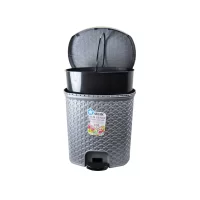 Cosul de gunoi ratan cu pedala 10 l din plastic de culoare gri este perfect pentru colectarea rapida si igienica a resturilor de tip menajer, intrucat vine prevaxut cu pedala la baza sa care, prin apasarea cu picorul va deschide capacul, fara sa mai fie nevoie sa va aplecati. Cosul de gunoi tip ratan cu pedala de 10 litri din plastic este dotat pe interiorul sau co o galeata neagra, detasabila prevazuta cu maner mobil ce faciliteaza eliminarea gunoaielor stranse intr-un mod mult mai comod. Cosul de gunoi din plastic imitatie ratan cu pedala de 10 litri confera durabilitate, rezistenta si un design modern fie ca il amplasati in bucatarie, baie sau alta incapere.
