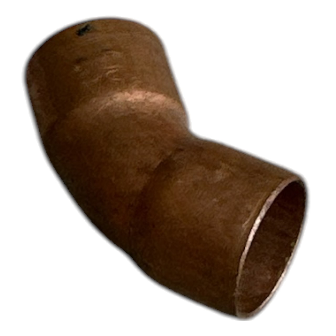 Fabricat integral din cupru, cotul oferă o rezistență excelentă la coroziune, temperaturi ridicate și uzură mecanică, asigurând o durată de viață îndelungată chiar și în condiții de utilizare intensă. Designul cu conexiune interioară permite o îmbinare precisă și stabilă, optimizând spațiul de montaj și păstrând linia estetică a instalației.