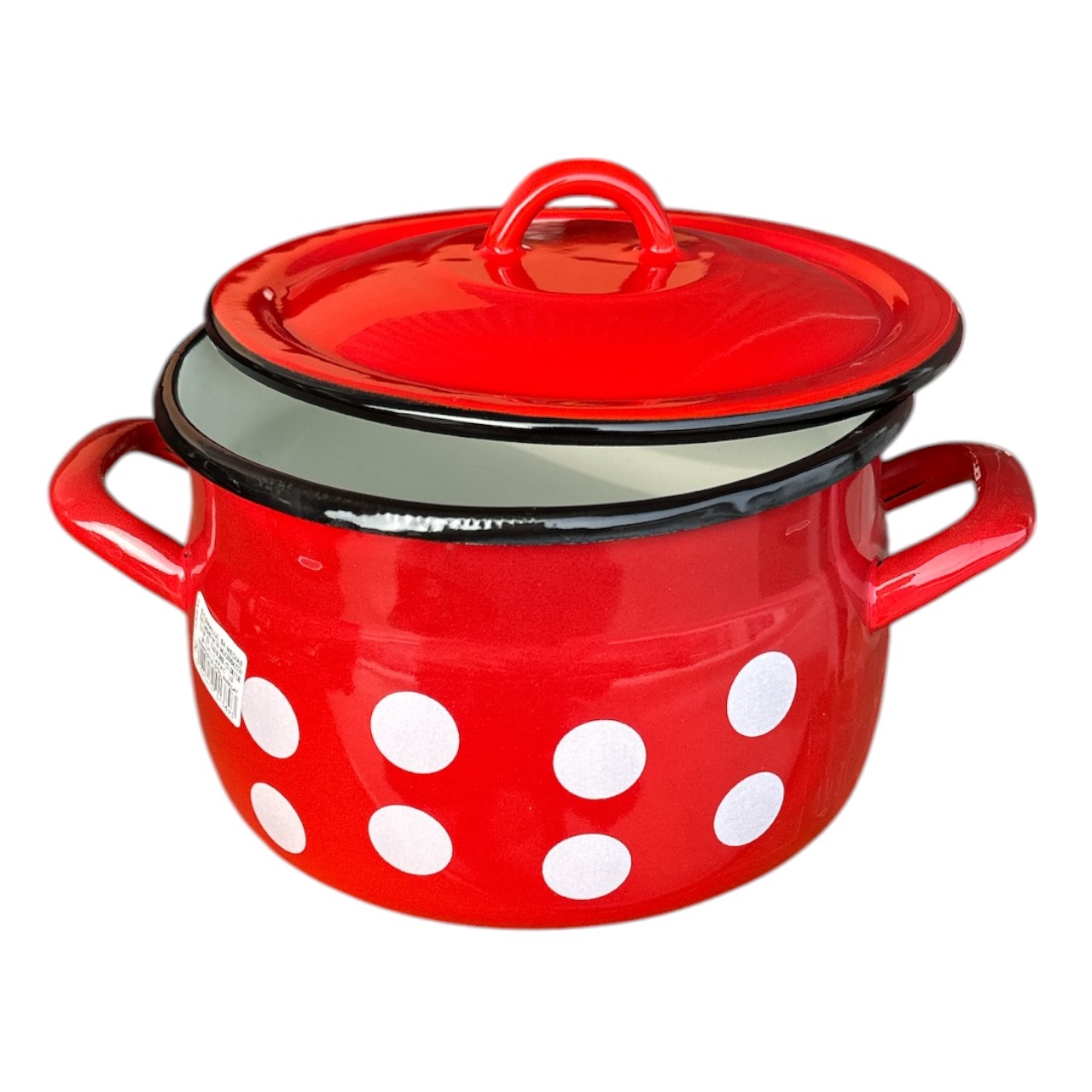 Cratita emailata 6L cu capac, rosie cu buline albe