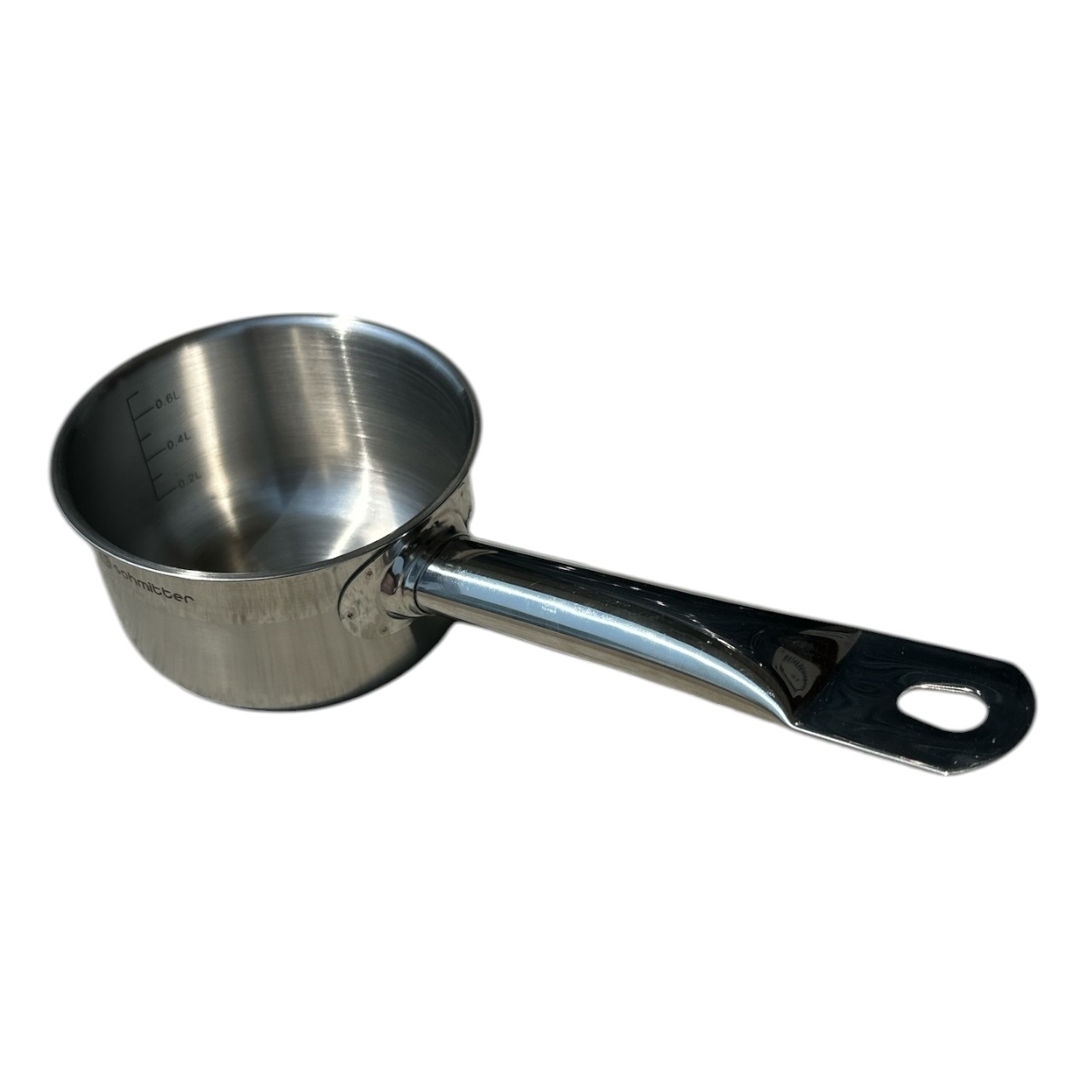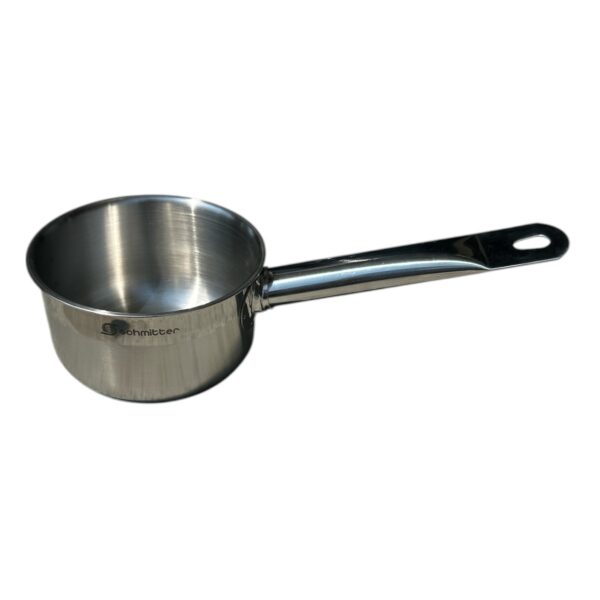 Cratita cu coada din inox cu capacitatea de 0.75 L marca Schmitter are diametrul de 12 cm si baza (fundul) in 5 straturi pentru utilizarea ei de bucatarii profesionisti pentru prepararea rapida a diferitelor tipuri de sosuri, prepararea cafelelor, incalizrea lapetelui sau a unei portii de mancare fara sa lipeasca. Cratita cu coada inox Schmitter este robusta si foarte rezistenta atunci cand vine vorba de socurile involuntare sau zgarieturi. Datorita materialului din care este obtinuta, cratita inox cu coada nu o sa rugineasca din cauza spalarilor repetate si nu se va deforma daca o utilizati in cuptor. Produs recomandat pentru peraparea diferitelor sosuri.