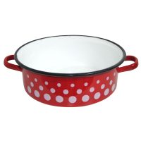 Caracteristici Cratita emailata 3L cu capac, rosie cu buline albe: