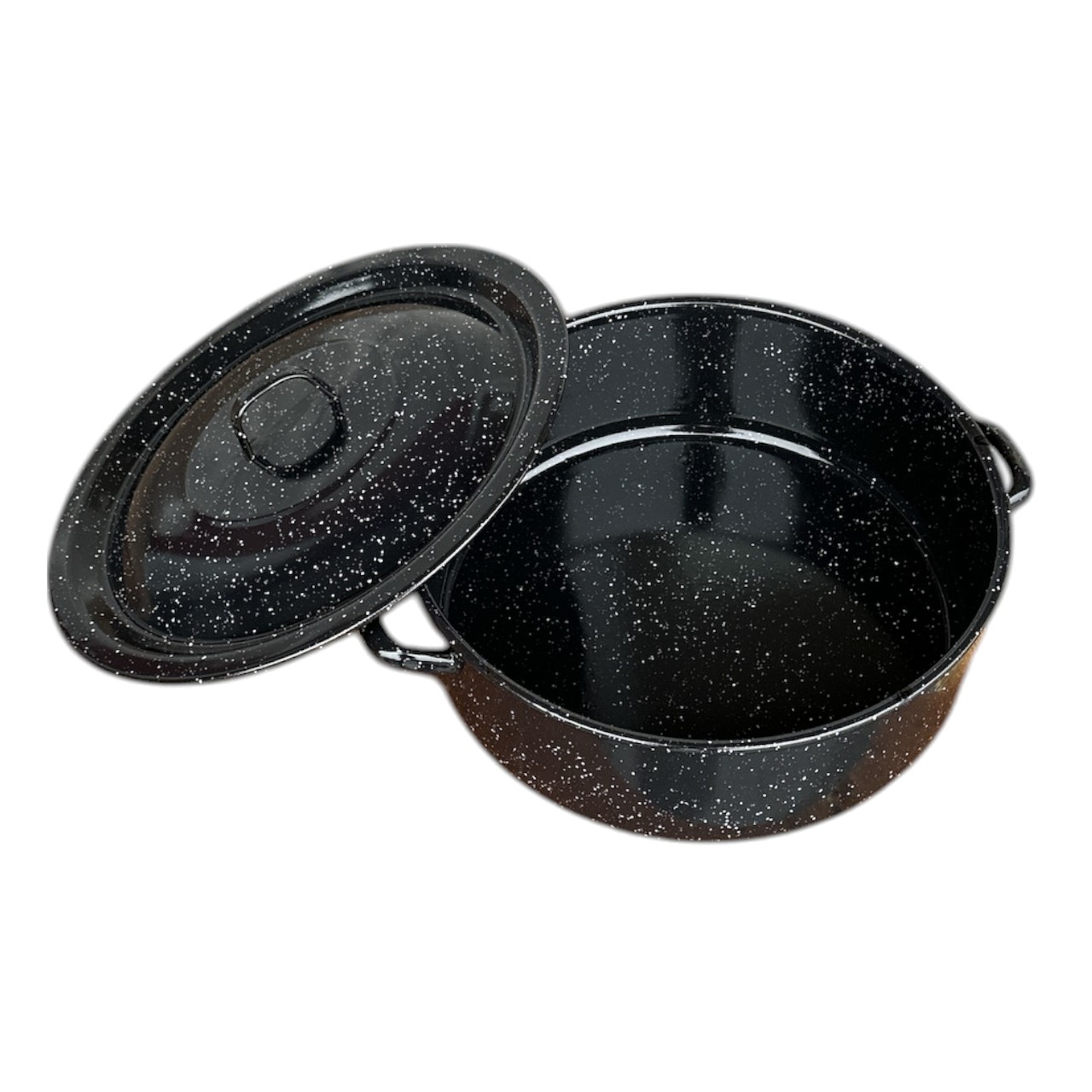 Cratita email de 50 litri cu capac este un vas util in orice locuinta la gatitul diferitelor bucate culinare pline de savoare pentru prieteni si cei dragi. Avand o cratita email de 50 L in arsenalul dumneavoastra de vesela, veti avea posibilitatea sa preparati o cantitate mai mare de mancare pentru diverse grupuri de persoane. Asadar, cratita email de 50L poate fi utilizata in propria locuinta, in gradinite, cantine, crese, scoli private, restaurante, baze militare, spitale, etc. Multumita stratului de email aflat pe cratita, protejeaza impotriva coroziunii, ruginei si sporeste durata de viata. De asemenea, cratita emailata cu capac de 50 litri este prevazuta cu doua manere turnate pe laterale pentru o manevrabilitate usoara si comoda..