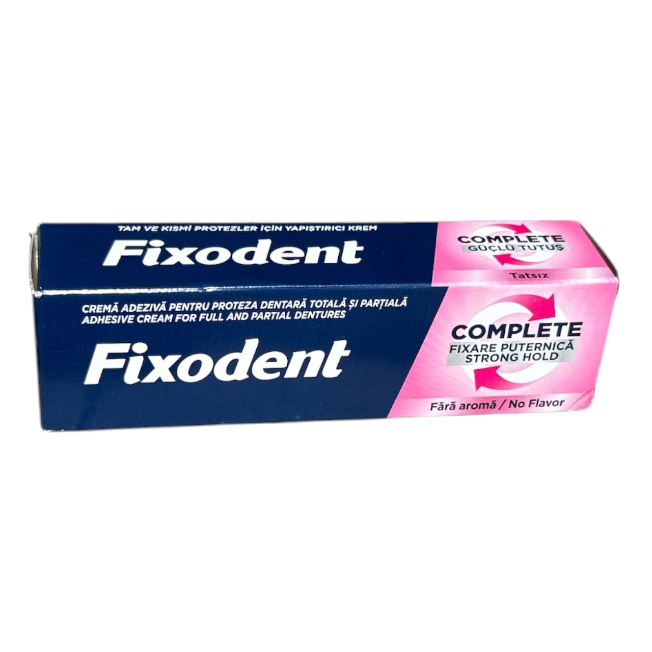 Fixodent Complete Original este o crema cu adeziv pentru fixarea protezelor dentare integrale si partiale in cantitate de 47 de grame ce ofera un plus de stabilitate, confort si protectie impotriva resturilor alimentare care pot provoca iritatii. Formula sa puternica mentine proteza ferm pe parcursul intregii zile, permitand vorbirea si mestecarea confortabila. Pentru o aplicare corecta, asigurati-va ca proteza si gingiile sunt curate si uscate, apoi aplicati benzi scurte de adeziv, evitand marginile. Fixati proteza prin presare si asteptati cateva minute inainte de a consuma alimente sau bauturi, pentru a beneficia de o prindere optima si confortabilă pe tot parcursul zilei.