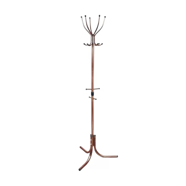 Cuierul de haine tip pom cu 6 agatatori de culoare maro este fabricat in intregime din otel, are 13 puncte in care puteti agata hainele, accesoriile vestimentare sau gentile, iar dimensiunile sale sunt reduse pentru a ocupa foarte putin spatiu. Acest tip de cuier haine cu forma de pom va ajuta sa organizati cu succes hainele de exterior, palariile, fularele sau gentile. Baza cuierului confera maxima stabilitate intrucat este formata din 4 picioare arcuite indiferent de greutatea hainelor aplicate pe acesta. Acest cuier haine tip pom cu 6 agatatori principale ce se pozitioneaza pe hol are un design elegant si modern asigura maxima functionalitate si poate fi utilizat chiar si in spatiile de birouri, restaurante, baruri sau hoteluri.