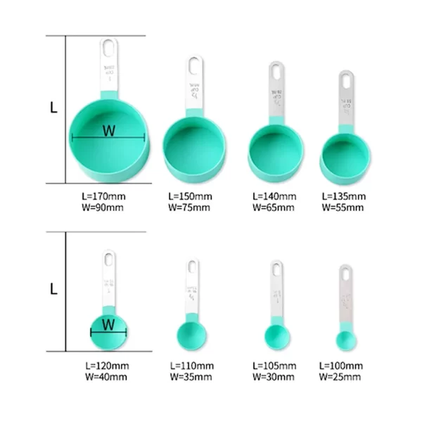 Cupele de masurat din inox la set de 8 bucati, au forma de linguri si sunt accesorii utile in bucatarie. Acestea sunt concepute pentru a masura cu precizie cantitatile de ingrediente (condimente, faina, etc.) in timpul gatitului sau al coptului. Fabricate din inox si imbracate in plastic rezistent, cupele pentru masurat sunt durabile si usor de utilizat. Fiecare cupa are o capacitate diferita, astfel incat poti masura cantitatile potrivite pentru fiecare ingredient din reteta ta.