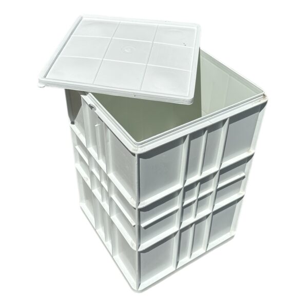 Cutia de branza prevazuta cu capac, dimensiune de 38 cm x 24 cm cu capacitate de 20 litri, fabricata din polietilena alimentara de inalta densitate, oferinta maxima protectie atat branzei cat si altor alimente in timpul depozitarii lor. Aceasta cutie de branza cu 20L capacitate are culoarea alba, este usoara, capacul cu care este prevazuta etanseaza foarte bine si rezista fara probleme la temperaturi scazute. Cutia pentru depozitare branza asigura un transport usor, fara griji. Mai mult decat atat, Cutia pentru branza poate fi curatata usor cu orice fel de detergent pentru vase.
