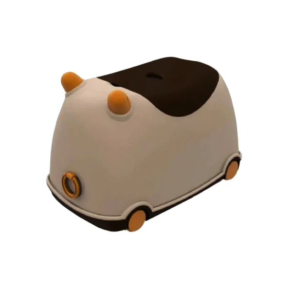 Cutie depozitare jucarii dotata cu roti forma ursulet este obtinuta in totalitate din plastic rezistent la socuri si umiditate, placut modelata in forma unui pui de urs. Aceasta este prevazuta cu roti pentru o mobilitate comoda, capac de inchidere iar in partea din fata dispune de un inel pentru aplicarea unei sfori, astfel incat copilul sa o poata trage dupa el. Cutia cu roti pentru depozitare jucarii nu are colturi ascutite care pot accidenta copiii, permitandu-le sa se joace cu ea indiferent ca este goala sau plina.