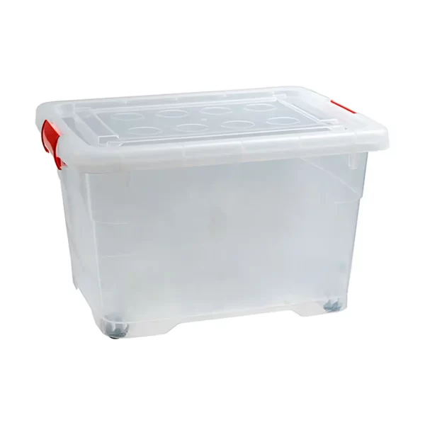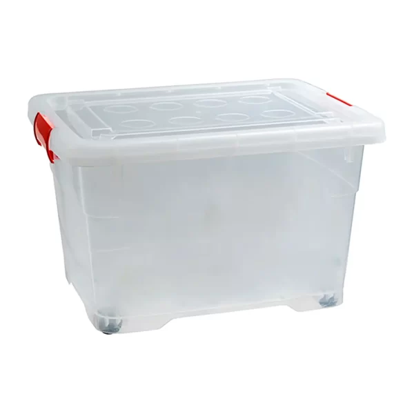 Cutie depozitare plastic transparent cu capac si roti, 75 litri