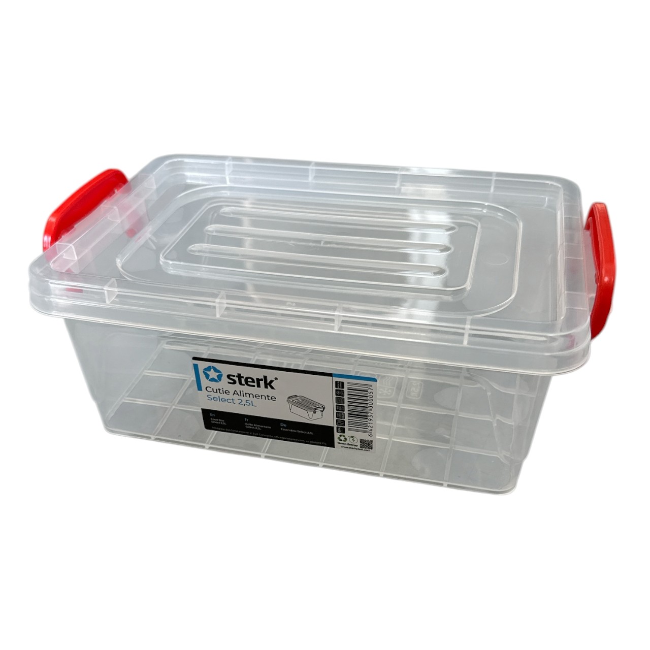 Cutia Sterk pentru depozitare cu capac, 2.5L este soluția perfectă pentru organizarea și păstrarea alimentelor în condiții optime. Fabricată din plastic transparent, această cutie permite identificarea rapidă a conținutului, fiind ideală pentru bucătărie, cămară sau frigider.