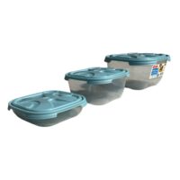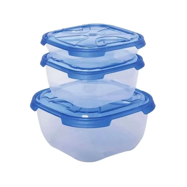 Cutiile alimentare din plastic transparent, patrate la set de 3 bucati va permite sa identificati usor continutul din interior fara a fi nevoie sa le deschideti. Fiind transparente, sunt ideale pentru organizarea si pastrarea alimentelor in frigider sau pentru a le lua cu dumneavoastgra. in deplasari sau la birou.