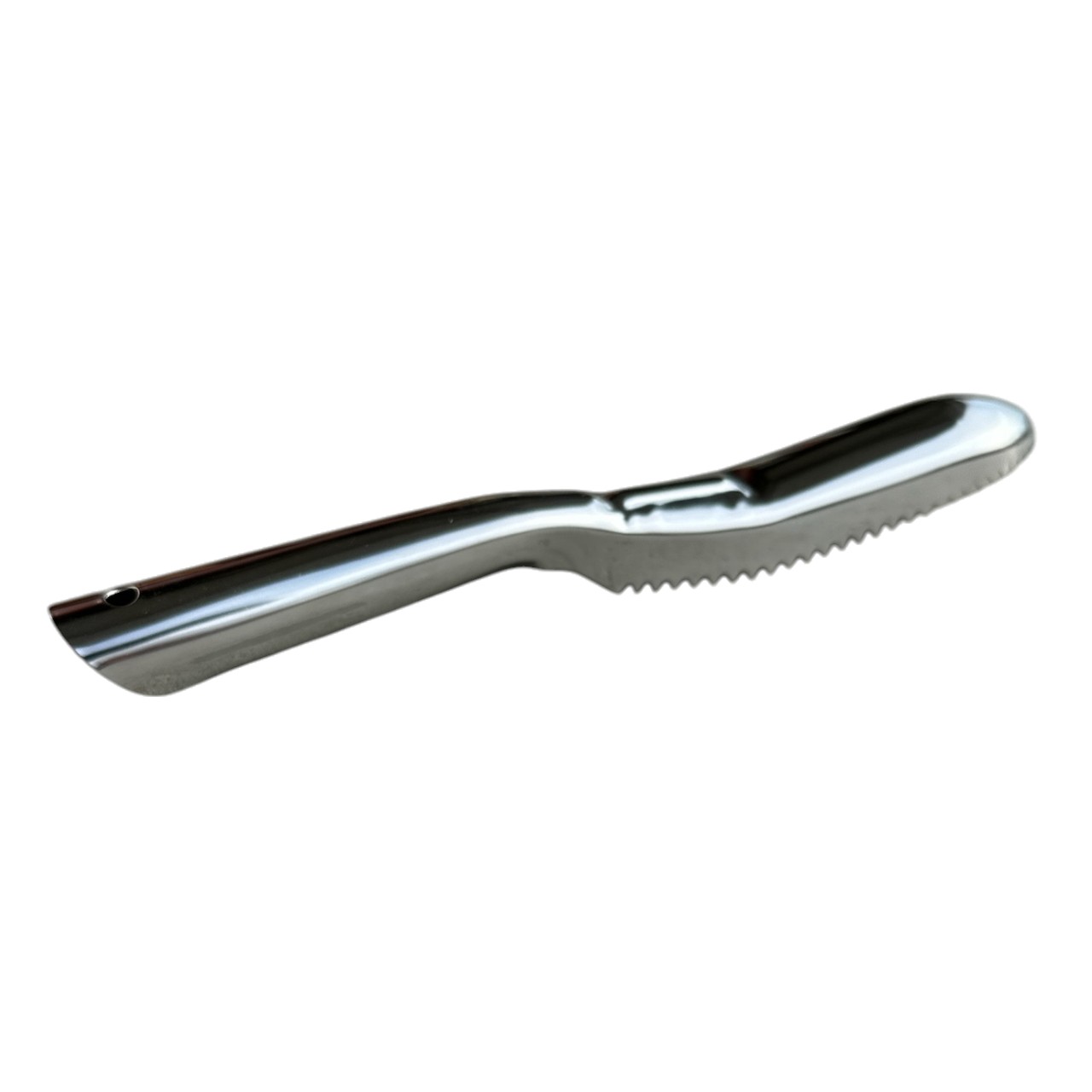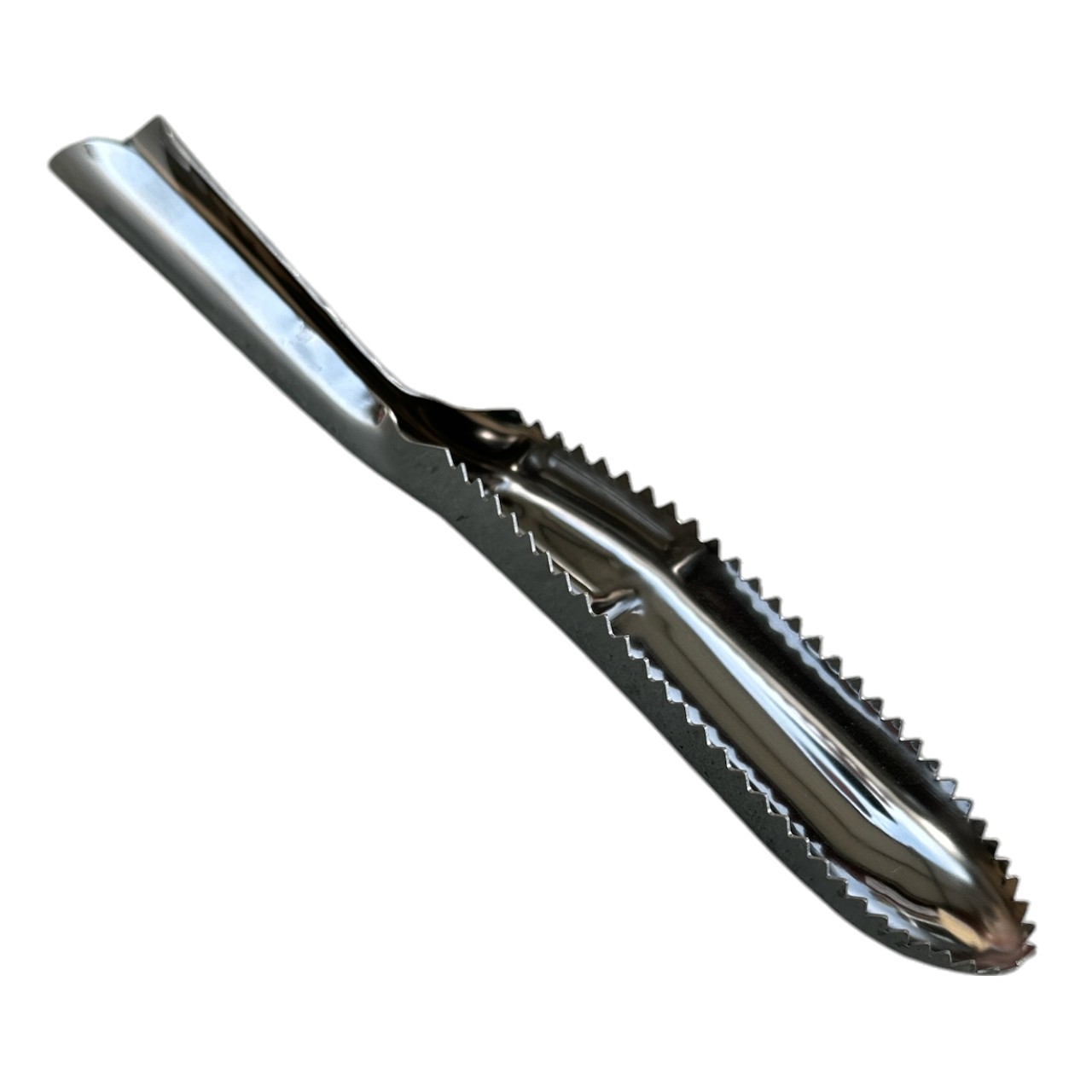 Suprafața de lucru, cu dimensiunile de 11x1,8 cm, este proiectată pentru eficiență, facilitând îndepărtarea solzilor și curățarea precisă a peștelui. Mânerul ergonomic, cu o lungime de 11 cm, asigură o prindere confortabilă și fermă, reducând efortul în timpul utilizării. Dotarea cu o gaură pentru agățat permite depozitarea ușoară și acces rapid, contribuind la organizarea spațiului de lucru.