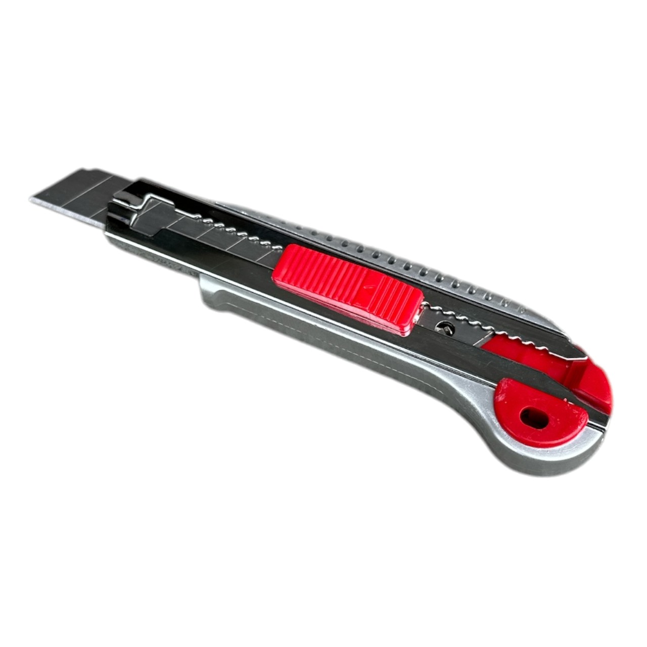 Cutter metalic cu lama retractabila, lung de 15.5 cm este un instrument util si practic pentru taierea eficienta a cartonului, articolelor din piele, suprafetelor din rigips, covoare, linoleum folii si nu numai. Fabricat din metal durabil, acest cutter ofera rezistenta si durabilitate pe termen lung. Designul sau include o lama retractabila, care poate ascunsa in manerul cutterului pentru a preveni accidentele si a proteja lama de deteriorari. Aceasta iti permite sa reglezi lungimea lamei in functie de nevoile tale de taiere. Cutterul metalic cu lama retractabila este versatil si poate fi folosit in diverse domenii, cum ar fi bricolajul, lucrarile de precizie, deschiderea ambalajelor sau orice alta activitate care necesita taierea precisa a materialelor. Cutter-ul vine impreuna cu 5 lame de rezerva.