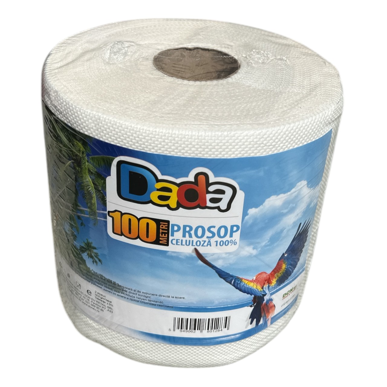 Prosopul de hartie DaDa obtinut din celuloza in 2 straturi la rola de 100 M este ideala in orice casa multumita proprietatilor sale de absorbtie, putand sterge orice fel de surapfata neteda de orice lichid, mizerie sau praf. Prosopul de hartie in 2 straturi este foarte eficient si la indemana, atunci cand faceti curatenie, cand trebuie sa stergeti geamurile, faianta, vasele, piesele de mobila, aragazul sau pentru simpla stergere a mainilor. Prosopul de hartie este rezistent si nu se deterioreaza usor, chiar si atunci cand este umed.