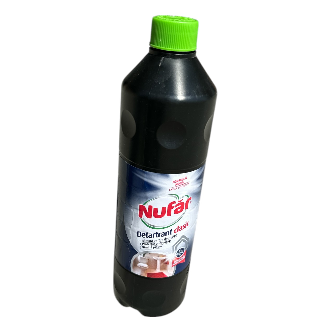 Nufar detartrant clasic 0,8 L cu formula originala curata si indeparteaza rapid si fara efort depunerile de calcar si petele de rugina din interiorul vasului de toaleta si de pe alte obiecte sanitare din faianta.
