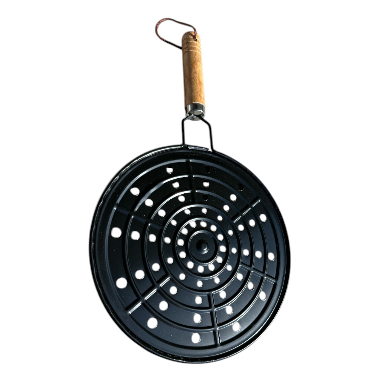 Difuzorul flacara aragaz rotund cu diametrul de 19.5 cm cunoscut si ca difuzor de caldura este un accesoriu fabricat din otel vopsit de culoare neagra si dotat cu maner. Acesta are un rol important pentru oalele, cratitele si orice alte tipuri de vase de gatit, intrucat nu va permite murdarirea sau innegrirea lor. Difuzorul de flacara aragaz este foarte rezistent la presiunea exercitata de cratita sau oala pozitionata pe acesta si nu se deformeaza din cauza temperaturilor ridicate. Difuzorul de caldura pentru aragaz poate fi aplicat pe orice tip de ochi de aragaz prevazut cu gratar iar curatarea sa se face extrem de usor cu apa si detergent de vase.